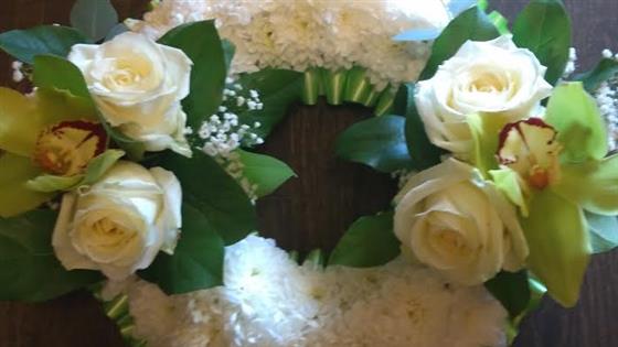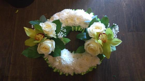 A 12" orchid wreath ring, as shown here a natural green orchid, can offer in pink, white, yellow or green, please specify in special instructions