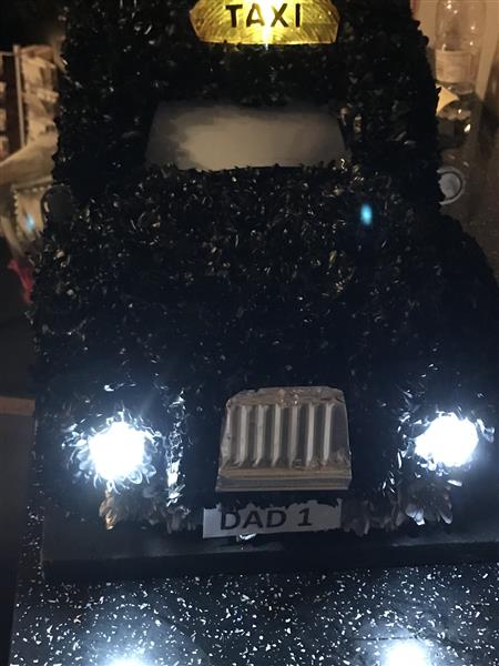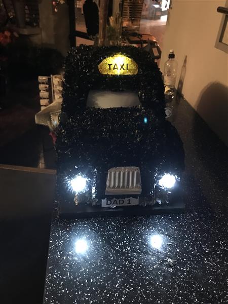A personalised tribute for a taxi driver. Comes with front and back lights attached.